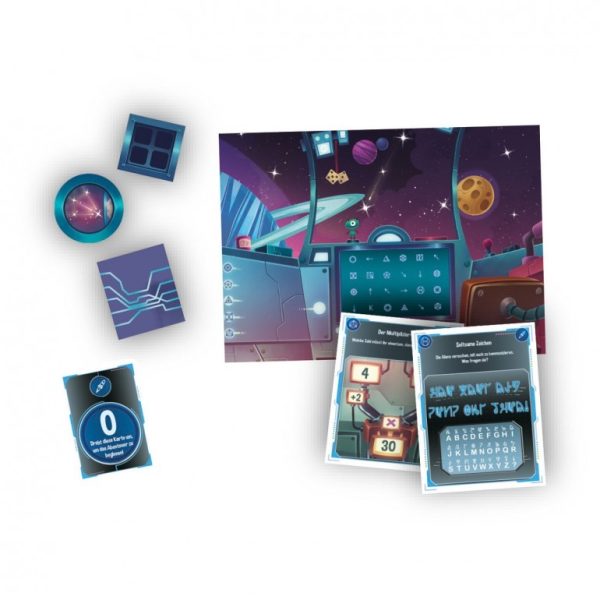 ¡El espacio está lleno de misterios y enigmas que solo un buen investigador con gran espíritu de observación puede resolver! Un entretenimiento único y una aventura a base de enigmas que agudizan el ingenio y desarrollan la lógica, el pensamiento matemático, la capacidad de observación y el lenguaje. Cada carta esconde una pista para continuar la aventura e intentar completar el viaje en el espacio. Incluye una baraja de cartas con enigmas, un tablero y objetos útiles para encontrar las pistas.
