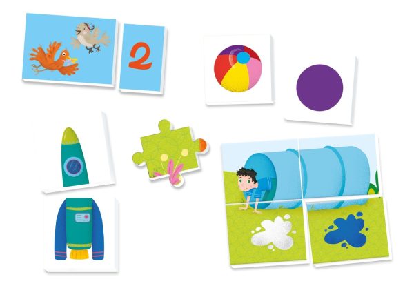 Un kit de juegos para aprender diviertiéndose, las formas, colores, números, cantidades, letras y palabras.
